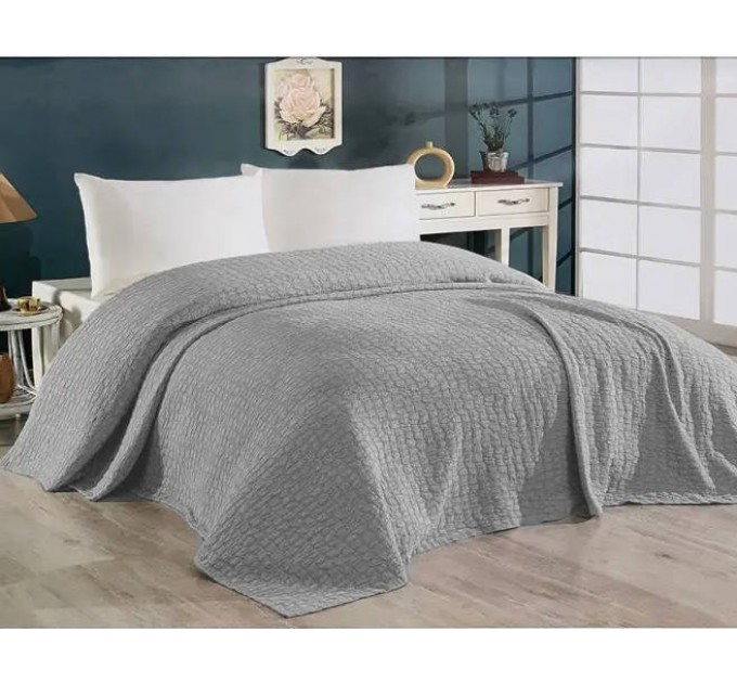 Винтажное покрывало DIAMOND LUIZA GREY 240х260см светло-серый (Турция). Цвет – светло-серый. В комплекте – покрывало 240х260см. Комплект изготовлен из вафельной ткани - плотный износостойкий материал с приятной структурой, хлопок 100%.